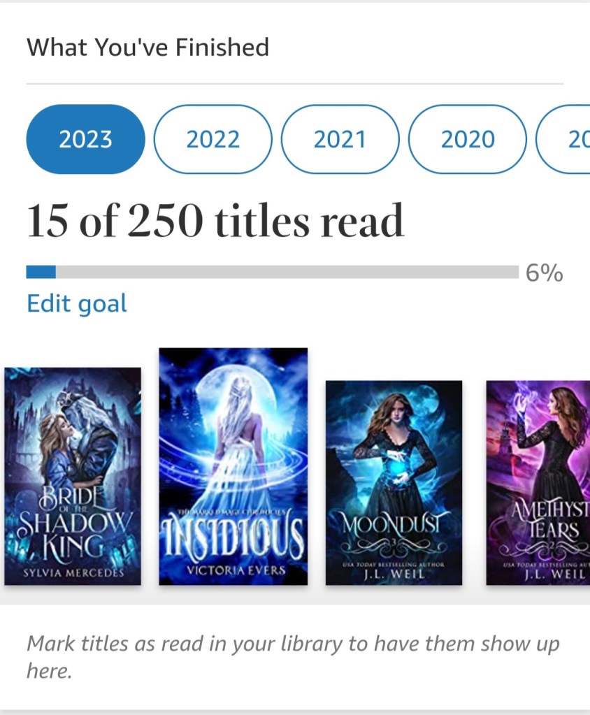 Yes, you read that right, 250 books. I’m pretty confident in myself. And even if I don’t accomplish this goal, at least I know what I can do. As you can see below, I’m already on a role.